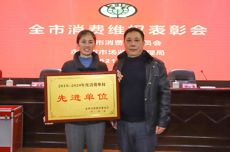 近日,永州市消費(fèi)者委員會(huì)、永州市市場(chǎng)監(jiān)督管理局召開全市消費(fèi)維權(quán)表彰會(huì),會(huì)上,永州市市場(chǎng)監(jiān)管局局長(zhǎng)周云玲先后對(duì)19家2019-2020年度全市消費(fèi)維權(quán)先進(jìn)單位、10位最美消費(fèi)維權(quán)人物予以表彰。