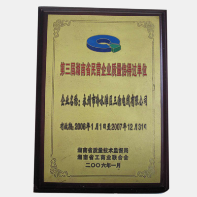 第三界湖南省民營企業(yè)質(zhì)量信得過單位